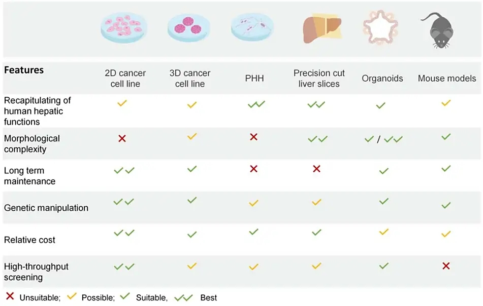 类器官(Organoids)是由干细胞在三维培养条件下自组织形成的微型器官结构,具备一定的组织分层和功能。肝脏类器官(Liver Organoids)通常由人诱导多能干细胞(iPSC)或成体干细胞分化而来,能够形成包含肝实质细胞(如肝细胞)和非实质细胞(如胆管细胞、星状细胞)等多种细胞类型的复杂结构。这种高度仿生的多细胞组成,使肝脏类器官能够更准确地模拟体内肝脏的代谢功能和毒性反应,成为继动物模型和二维细胞模型之后的理想替代方案。
